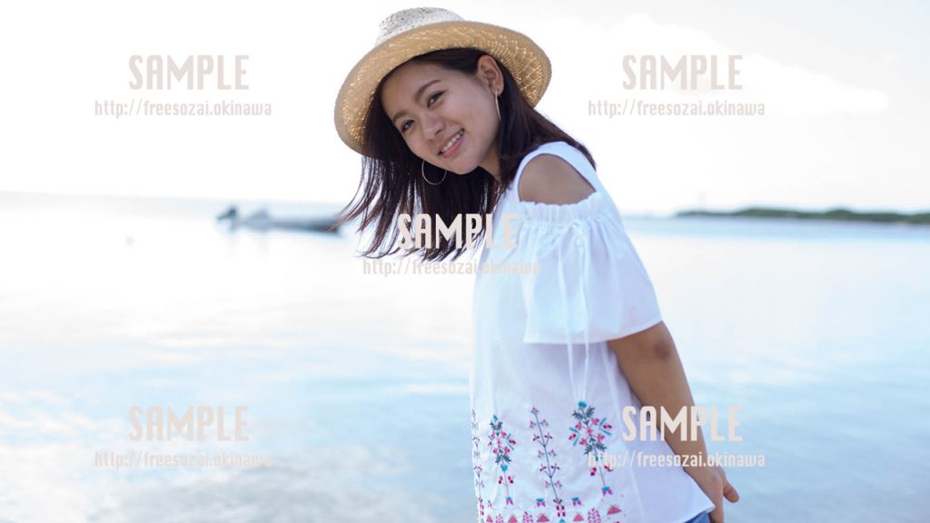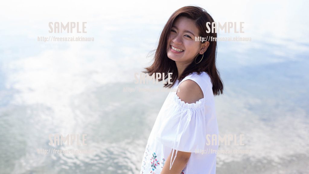 撮影場所:沖縄 海をバックに笑顔に癒やされるぐらい最高な女の子を撮影しました。 背景画像や素材に使用できます。 -