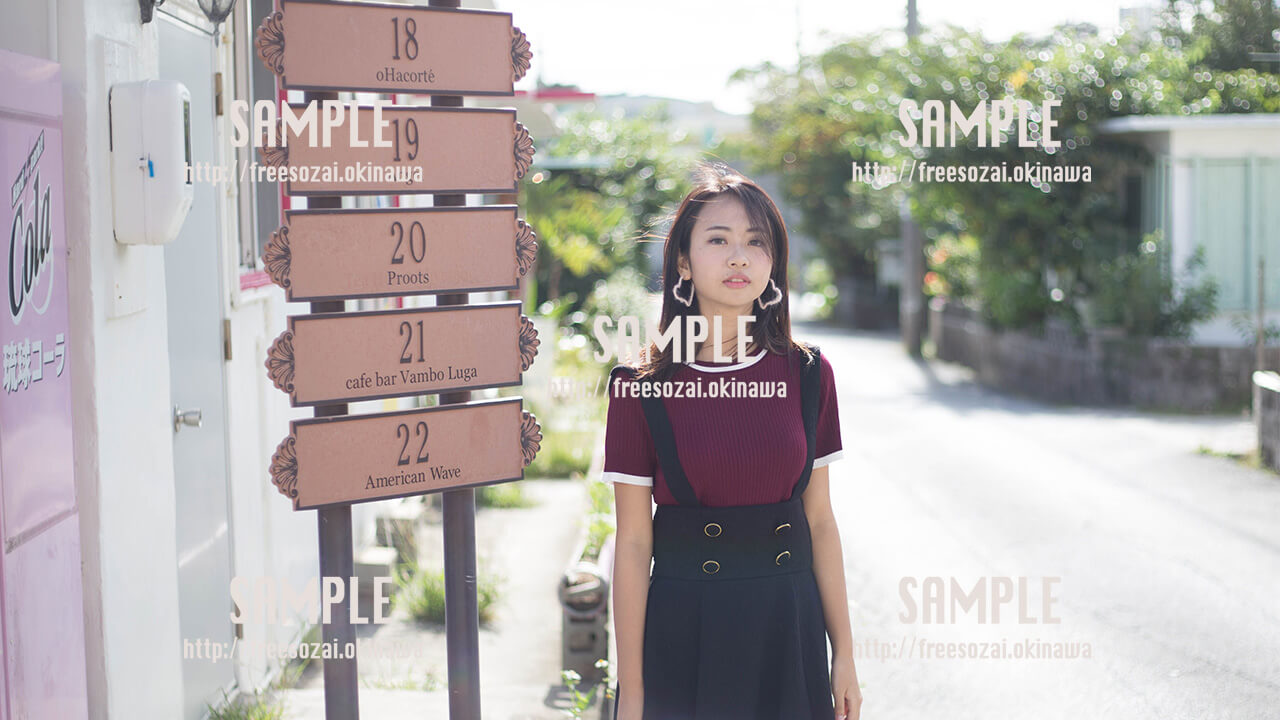撮影場所:浦添大公園 赤瓦と美少女を撮った写真です。 壁紙や素材に使用できます。 -