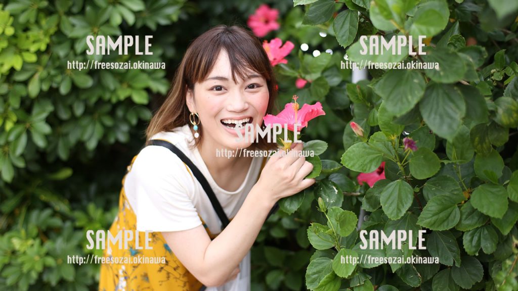 撮影場所:北谷 北谷にてハイビスカスと女の子を撮影しました。 背景画像や素材に使用できます。 -