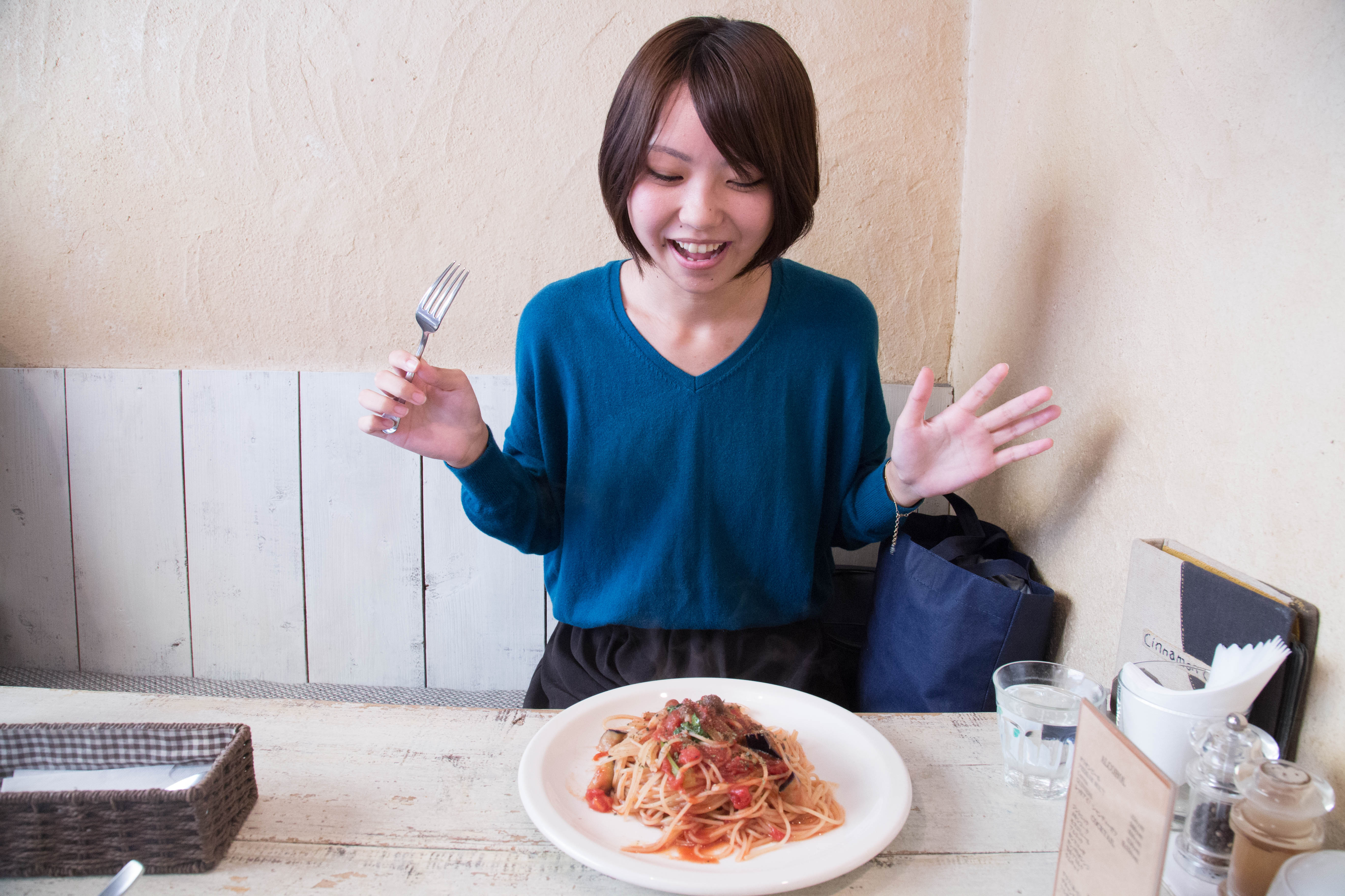 【Cinnamon Cafe】パスタを食べようとしている美少女 写真素材