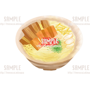 サイズ300×300ピクセル , 透過pngファイル 沖縄でよく食べられている「沖縄そば」のイラスト素材です。 透過処理済みなので他のイラストなどに手軽に追加することができ...