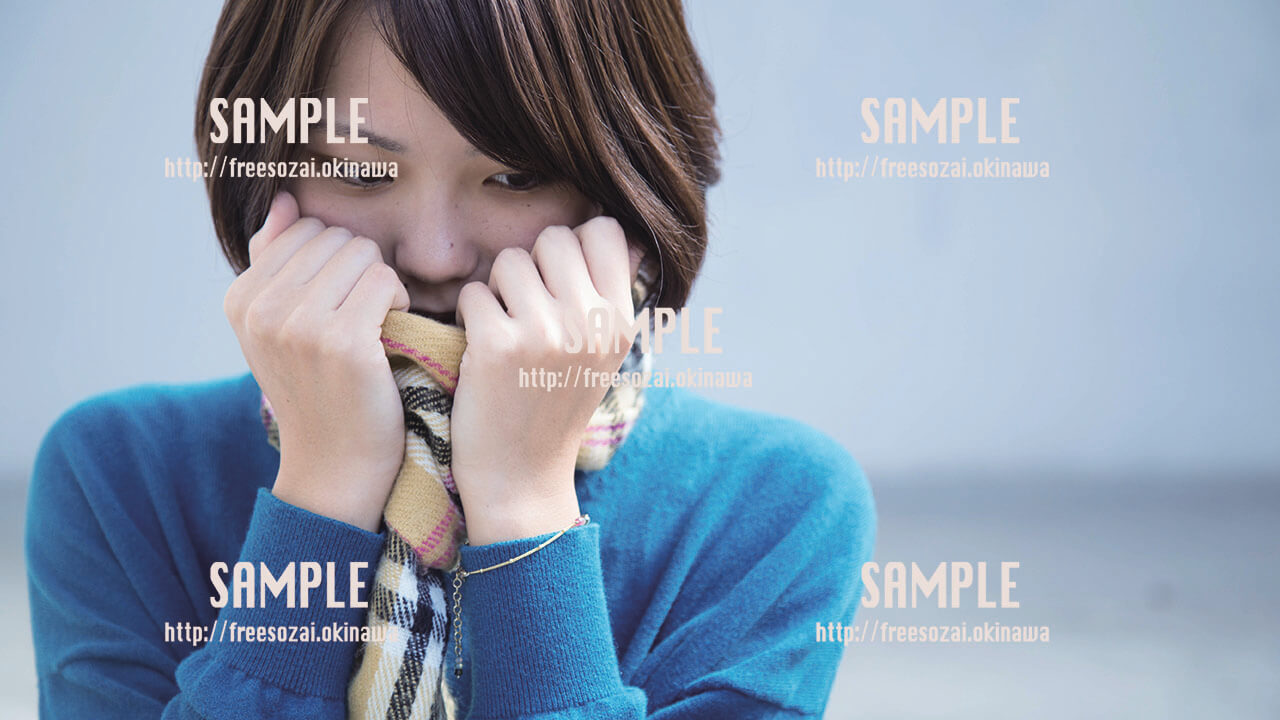 撮影場所:パレットくもじ 少女が寒がっているところです。 背景画像や素材に使用できます。