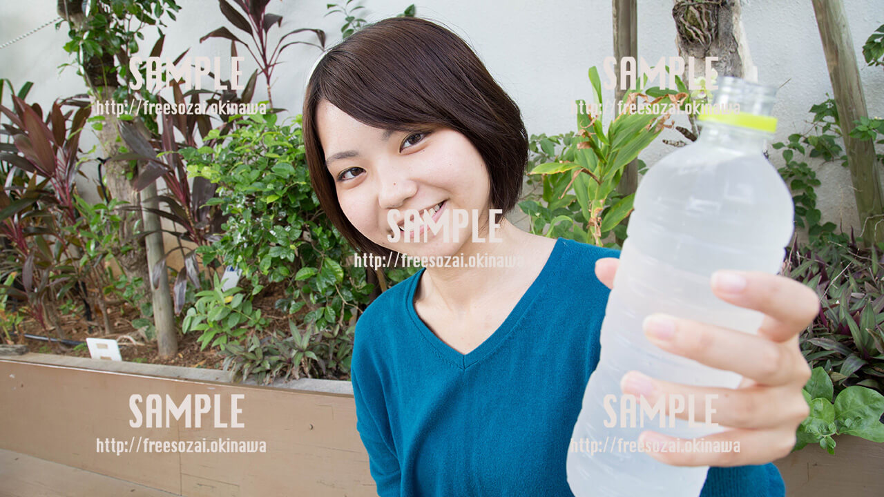 【パレット久茂地】「水飲む?」と声をかける美少女 写真素材