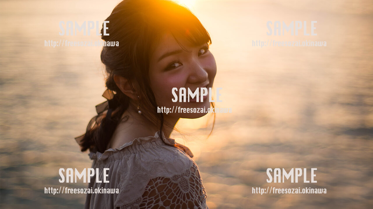 【アラハビーチ】振り向く沖縄美少女 写真素材