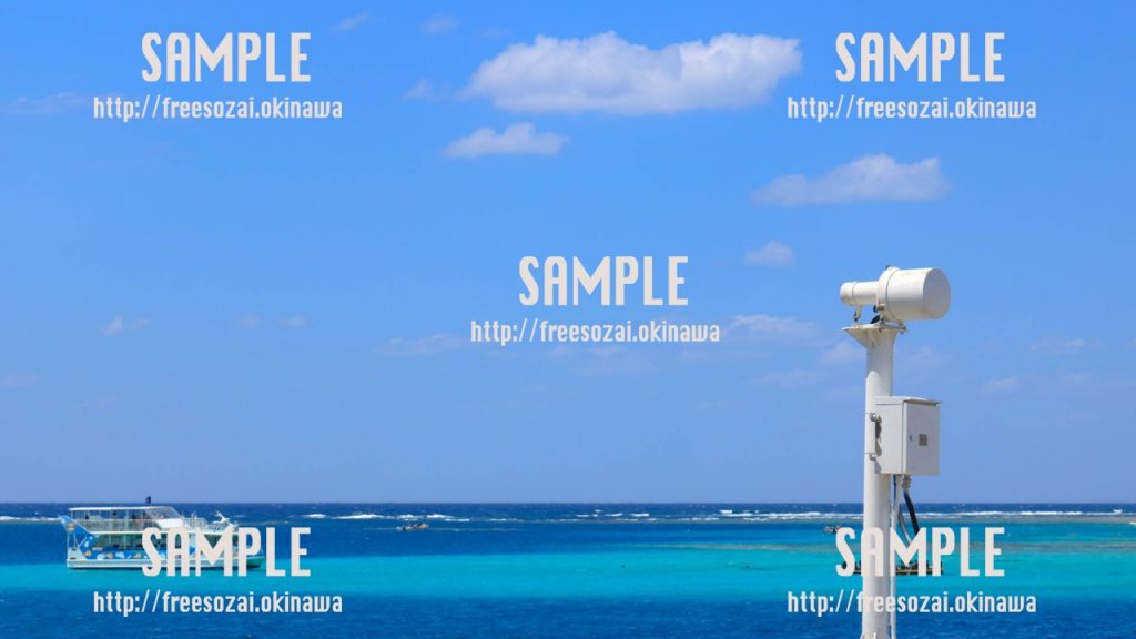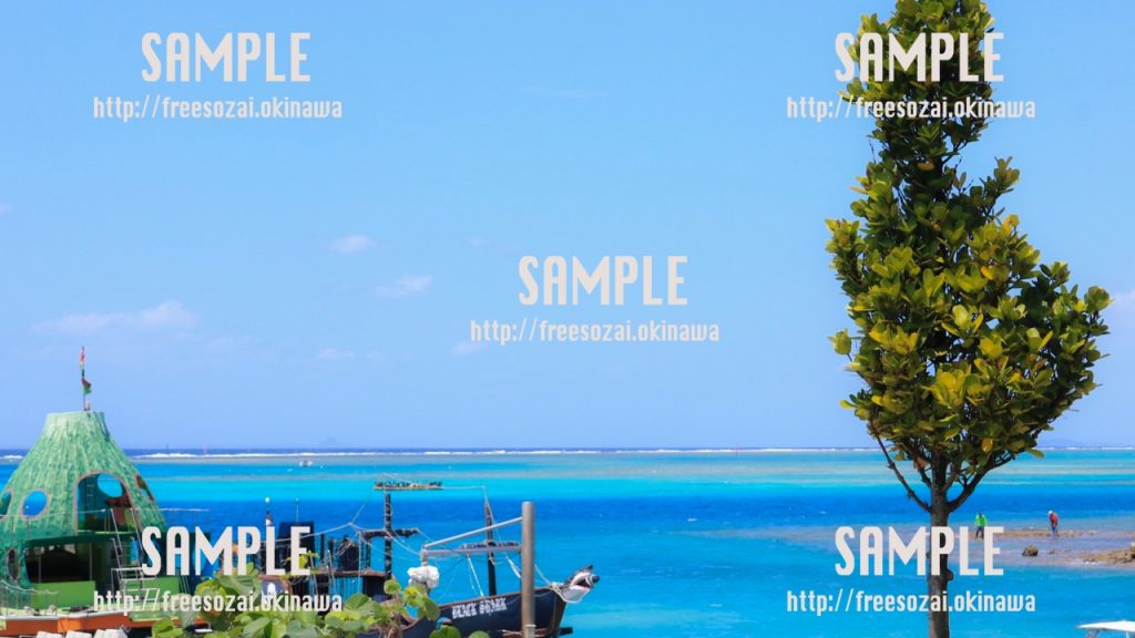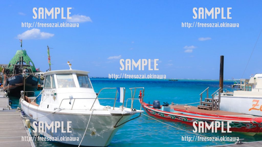 撮影場所:沖縄 沖縄で撮影された海と船の写真素材です。 背景画像や素材に使用できます。 -