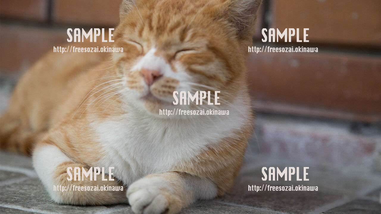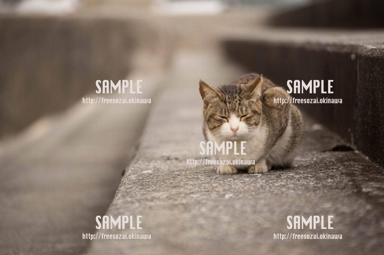 階段で目をつむっている猫がとてもかわいらしいです。 壁紙や作品の素材として使用可能です。 -