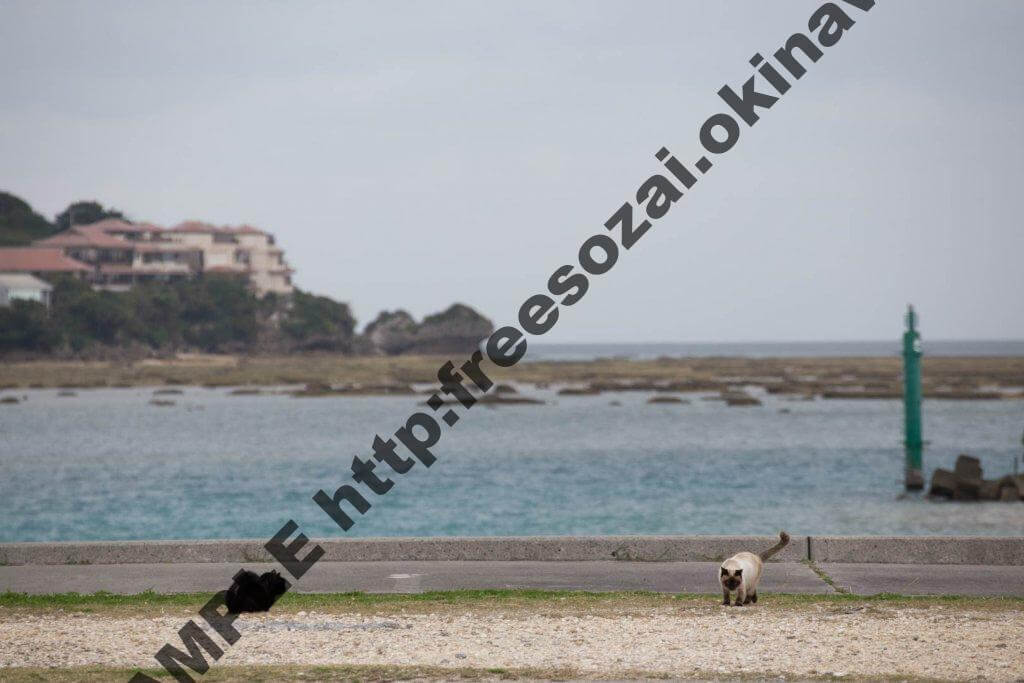 海辺で可愛らしい猫があそんでいる写真です。 素材や壁紙に使用できます。 -