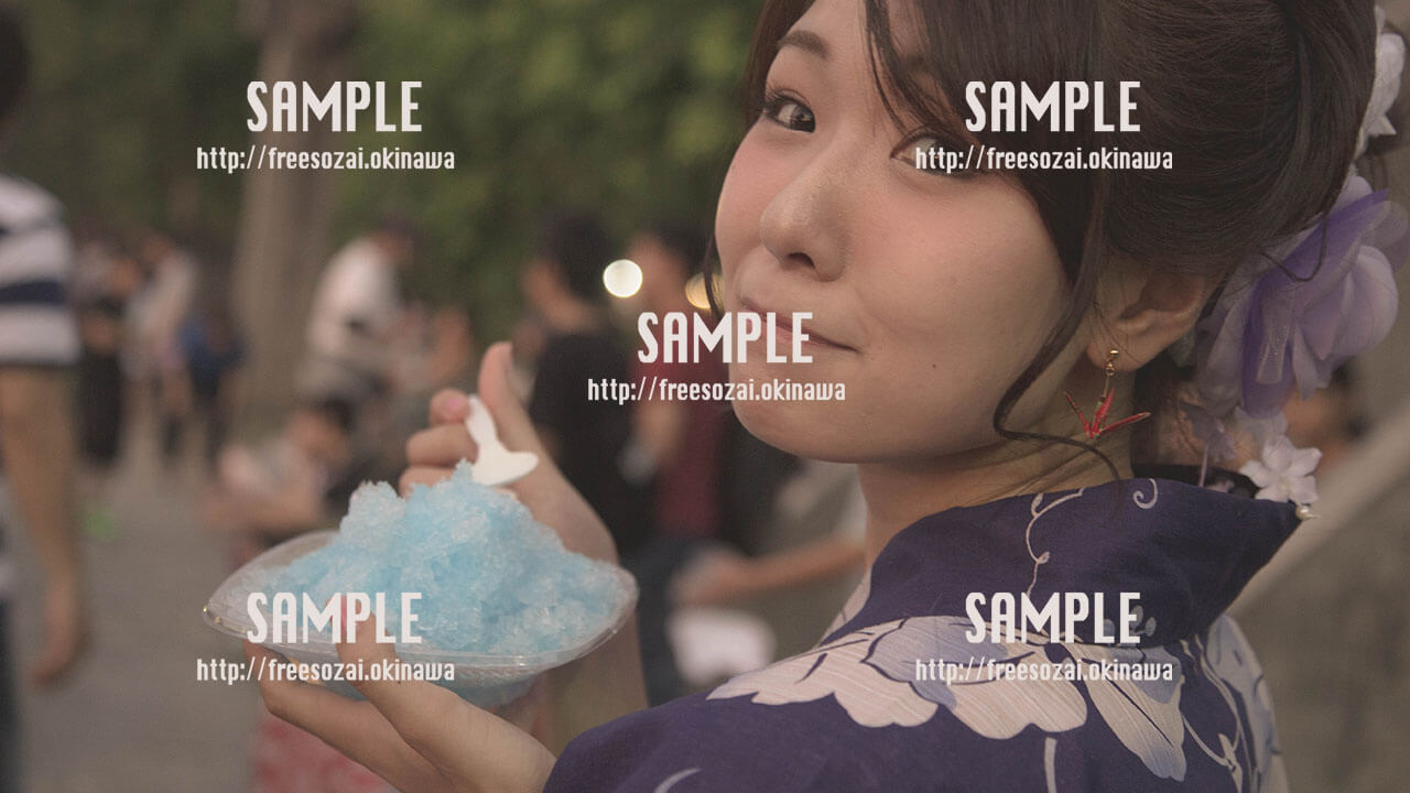 撮影場所:てだこ祭り かき氷を食べる女の子を撮影した写真です。 背景画像や素材に使用できます。