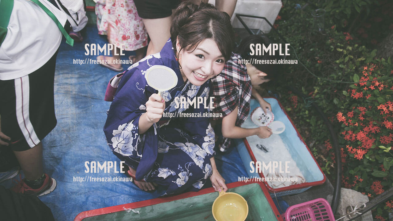 撮影場所:てだこ祭り 浦添のてだこ祭りで撮影した写真です。 女の子が金魚すくいしている画像いかがですか? 背景画像や素材に使用できます。 -