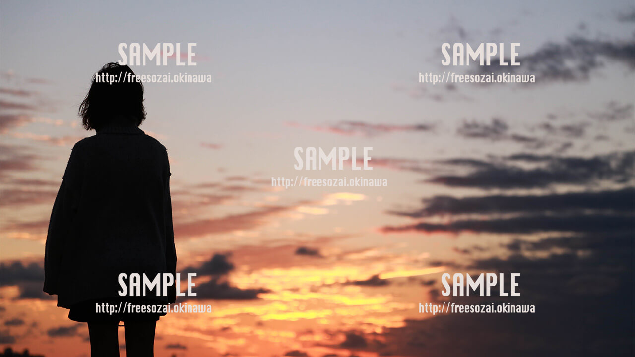 【トロピカルビーチ】夕焼けと女性 写真素材
