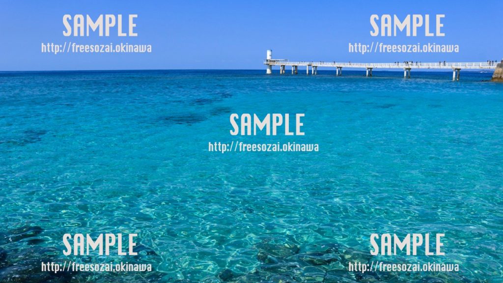 撮影場所:沖縄 沖縄で撮影された桟橋と透き通る青い海の写真素材です。 背景画像や素材に使用できます。 -