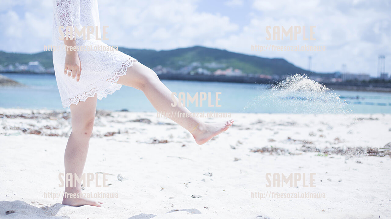 【西原マリンパーク】白い砂浜と美女 写真素材