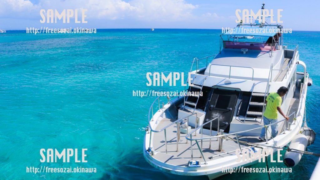 撮影場所:沖縄 沖縄で撮影された海とフェリーの写真素材です。 背景画像や素材に使用できます。 -