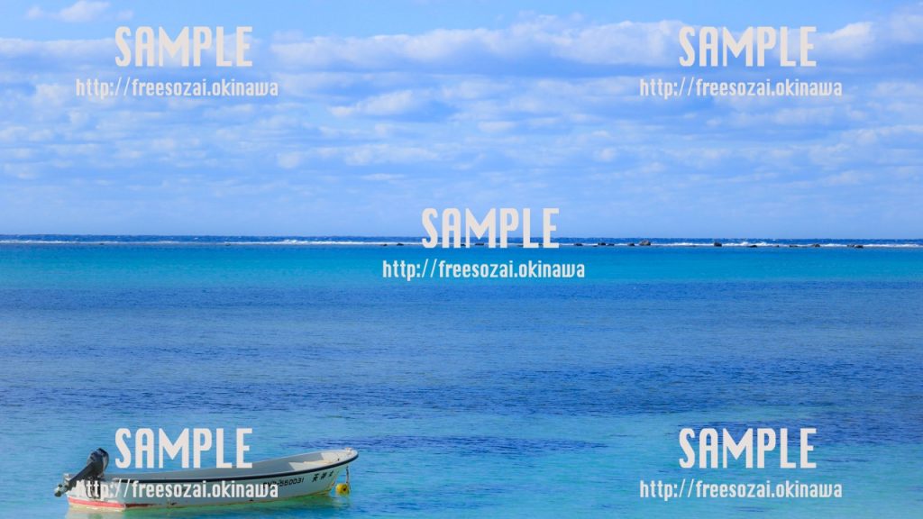 撮影場所:沖縄 沖縄で撮影された青い海と浜辺の写真素材です。 背景画像や素材に使用できます。 -