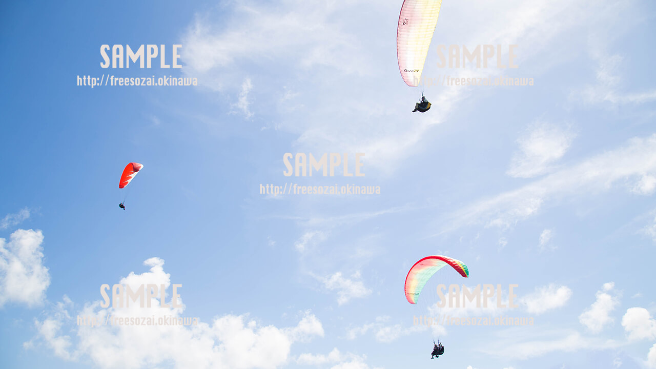 撮影場所:知念岬 沖縄にある知念岬で撮影したパラグライダーの写真です。 背景画像や素材に使用できます。 -