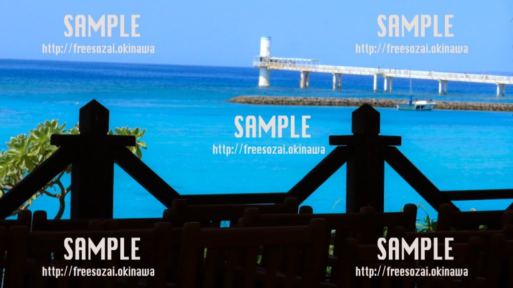 撮影場所:沖縄 沖縄で撮影されたテラスから見える海の写真素材です。 背景画像や素材に使用できます。 -