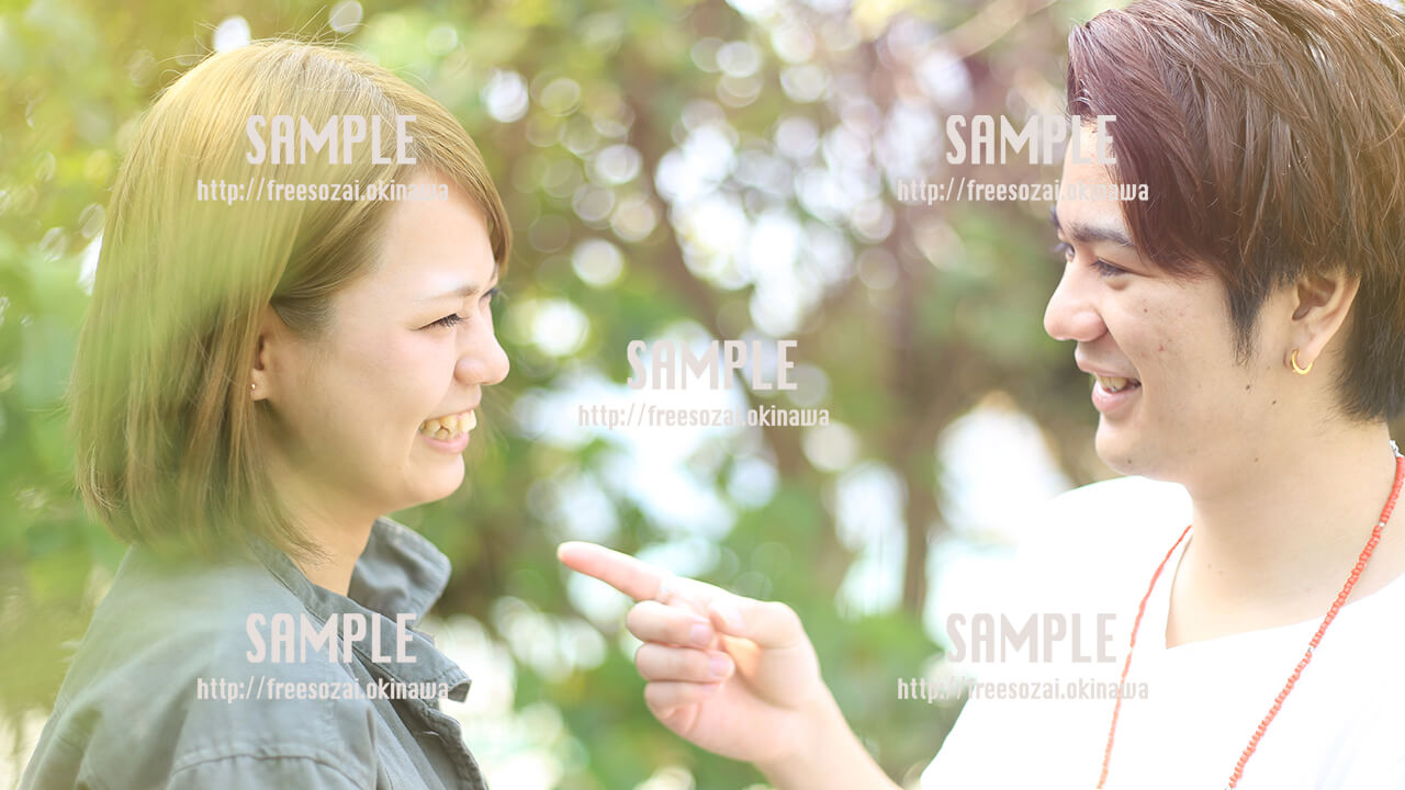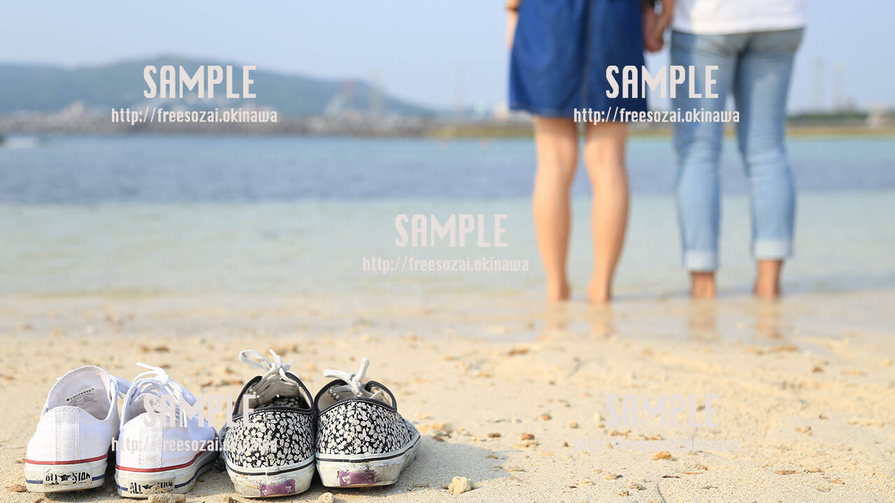 撮影場所:きらきらビーチ 沖縄にあるきらきらビーチで撮影したカップルの写真です。 素材や背景画像や素材に使用できます。