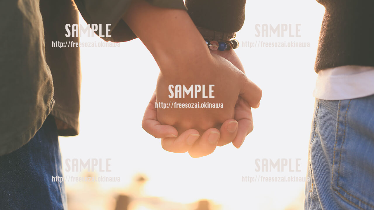 【沖縄】砂浜で手を繋ぐカップル 写真素材